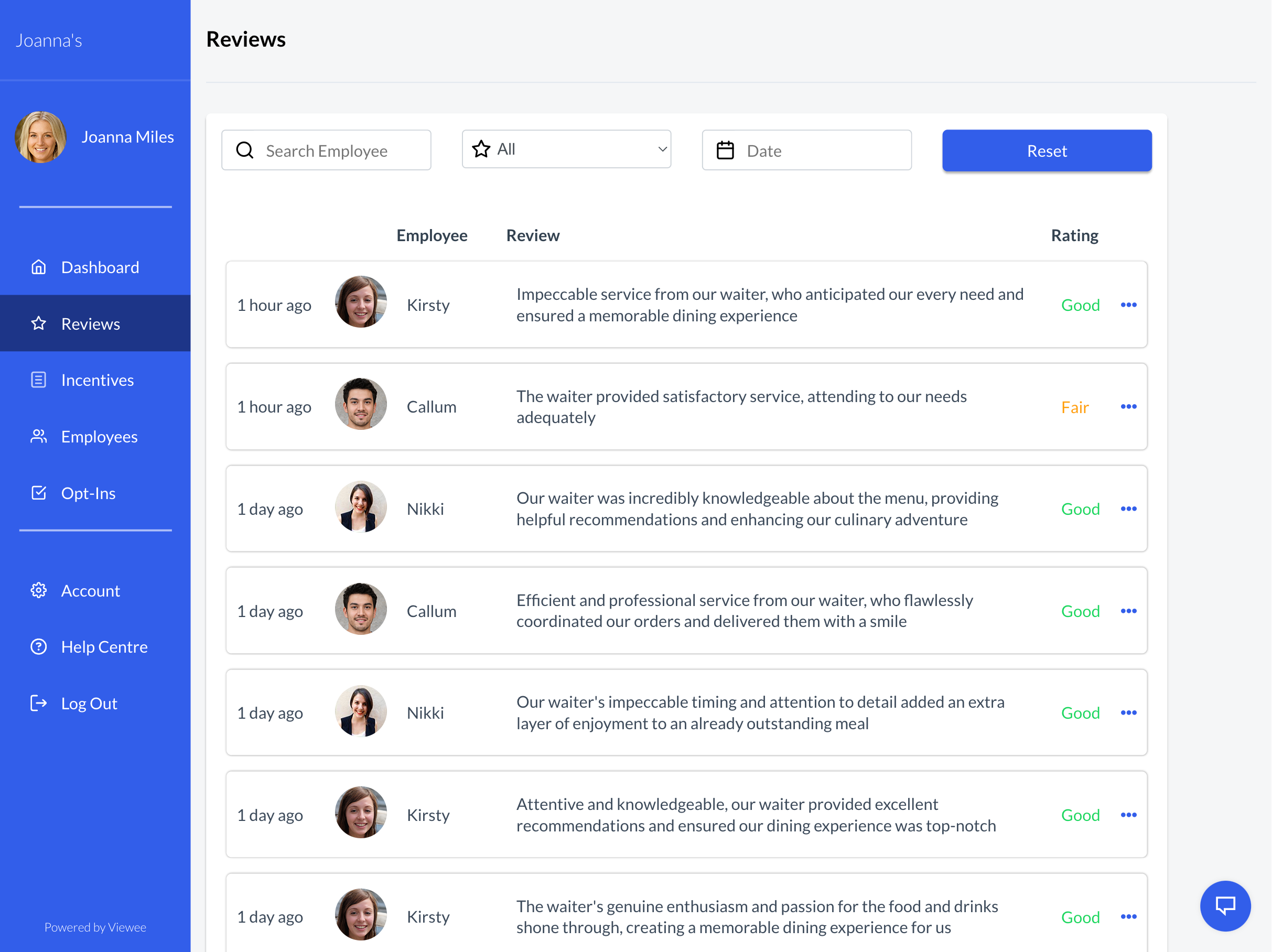 Use Viewee's insight to make informed decisions and identify areas where your staff can improve to boost your business