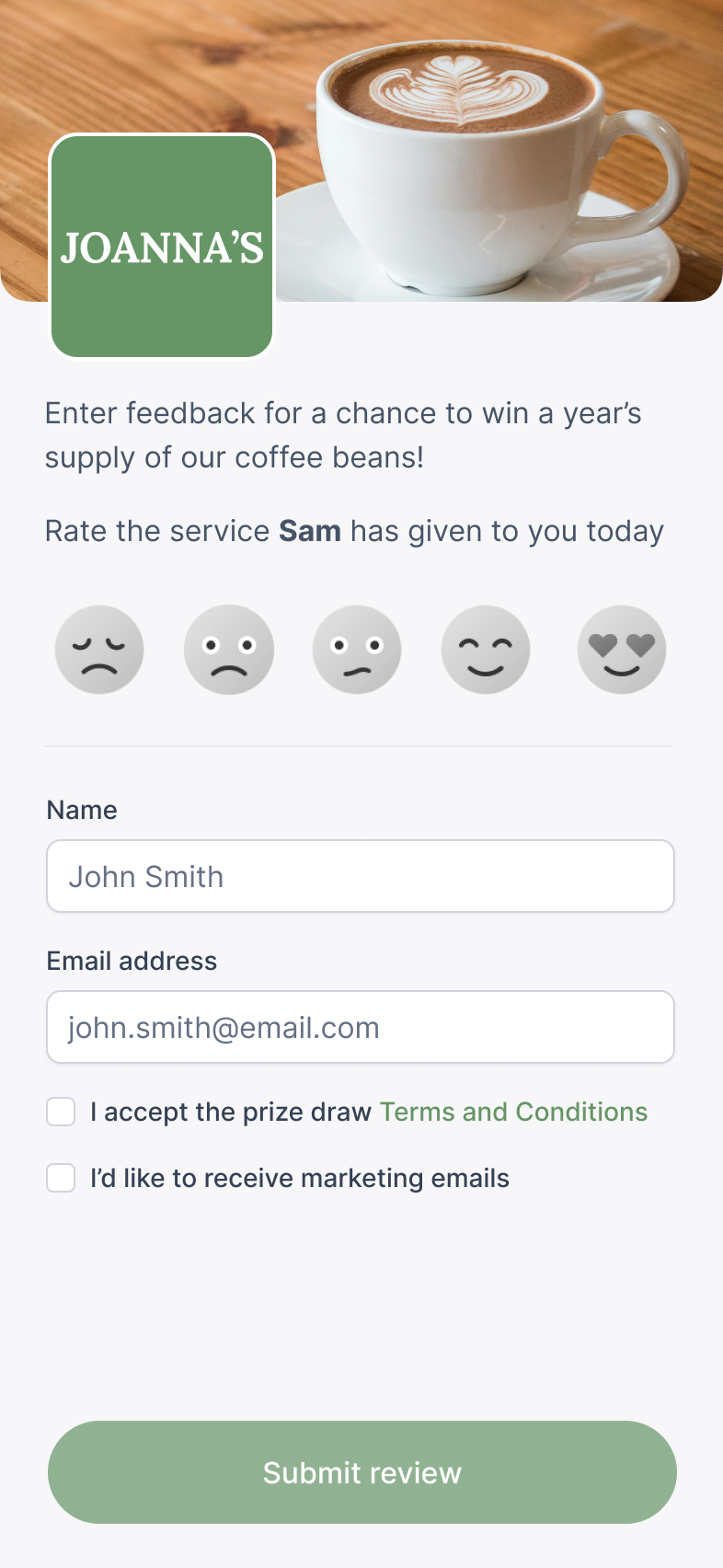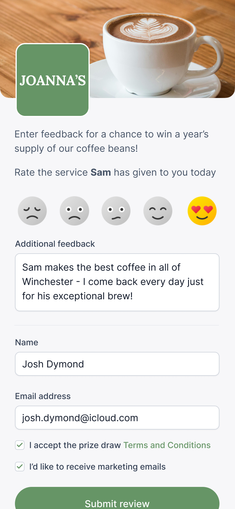 When providing feedback, customers are able to opt-in to email marketing, giving your business potential for a greater reach and repeat business.